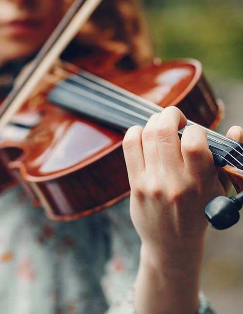 Desarrollamos conocimientos en la interpretación del violín  a través de ejercicios técnicos, métodos reconocidos, y obras clásicas, para adquirir una postura correcta, desarrollar conocimientos en la notación musical, teniendo en cuenta el carácter y la expresión en el instrumento